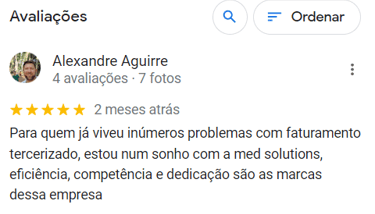 Relação ganha-ganha. O pagamento à Med Solutions acontece mediante ao seu recebimento.
